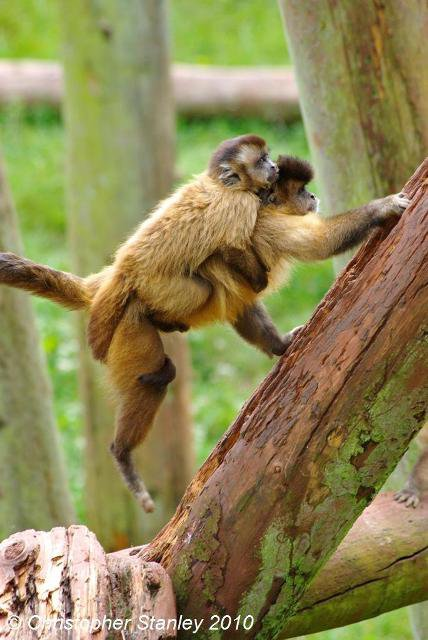 Food: Capuchins have a wide variety of calls which are used to contact the group or individuals, end aggressive encounters or alert the group to the presence of danger. Members of a troop give sharp whistling calls at the sight of hawks and eagles, two of the most significant predators of this species. Gestures and facial expressions are also widely used in communication and social grooming is an important form of contact.. Brown Capuchin monkeys are social animals forming groups of 8 to 15 animals.